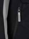 De jas is voorzien van een netting-voering en is gemaakt van polyester met stretch, waardoor je comfortabel beweegt in de jas. Met klittenband verstelbare biezen aan het einde van de mouwen, elastisch verstelbare taille en een flap achter de rits houden wind tegen. De capuchon is eveneens verstelbaar en afneembaar met een rits. Op borst, bovenarm en bovenrug zijn reflectie details aangebracht. De jas heeft drie ritszakken: twee op de heup en een op de borst. Aan de binnenzijde zit een met klittenband afsluitbare zak.